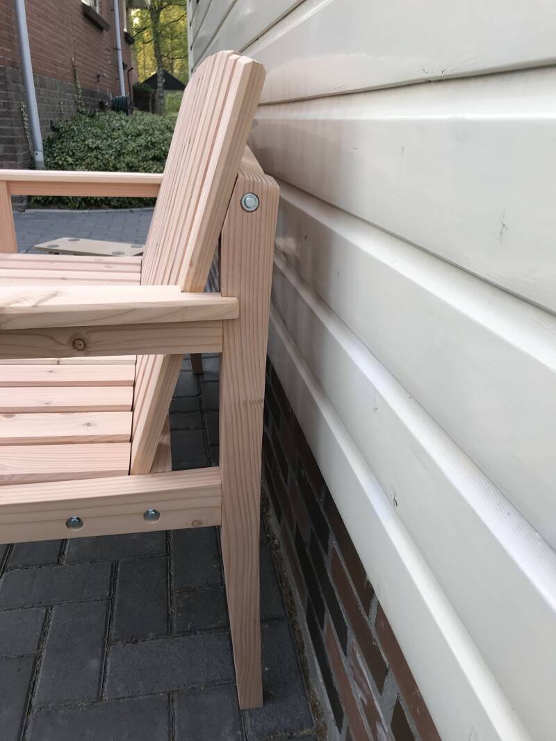 De bank is 1,2 m breed uitgevoerd in douglashout.